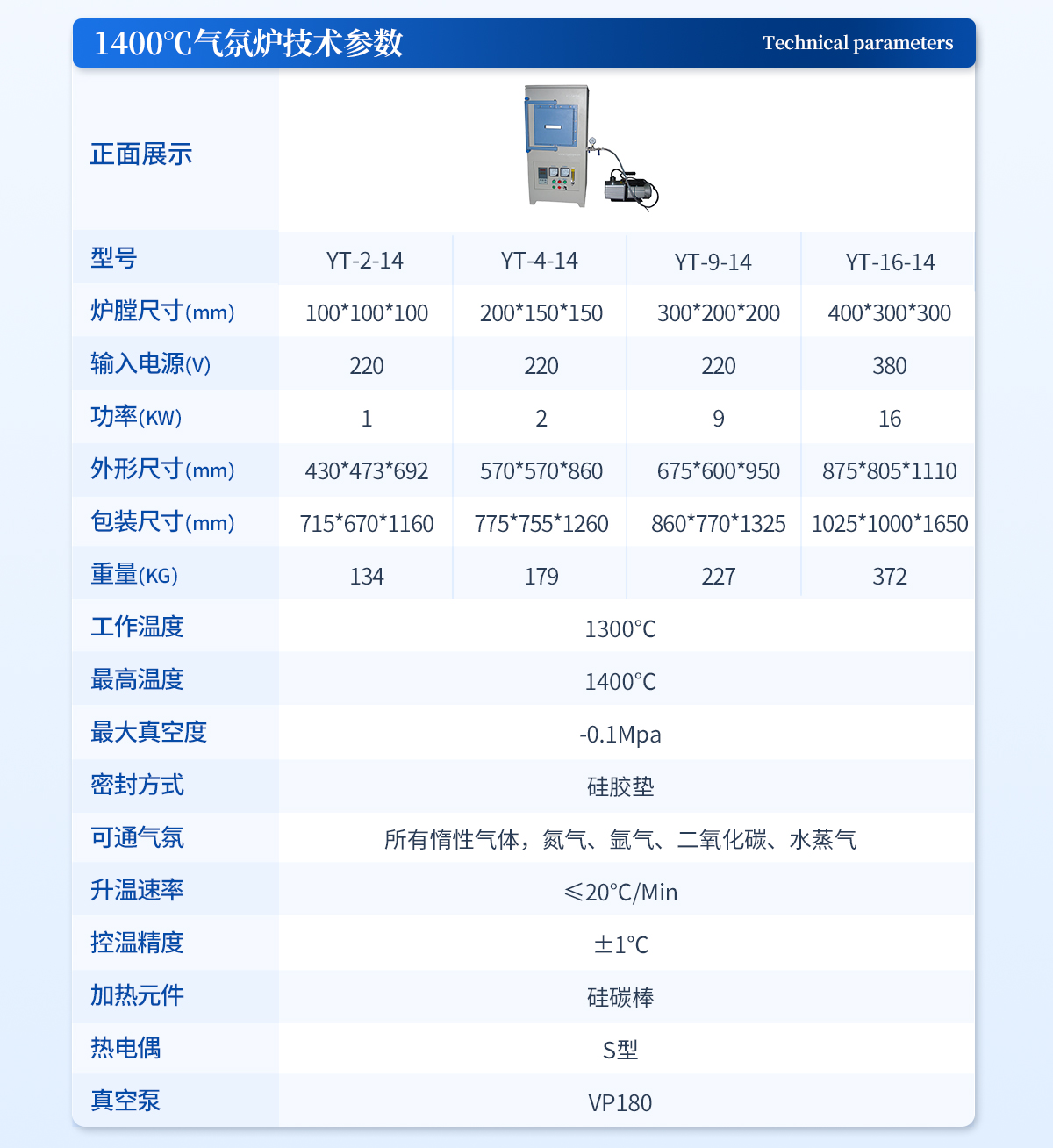 SA2-2-17TP | 1700℃ | 100*100*100 | 220V/2KW | 670*670*1115mm,138KG |